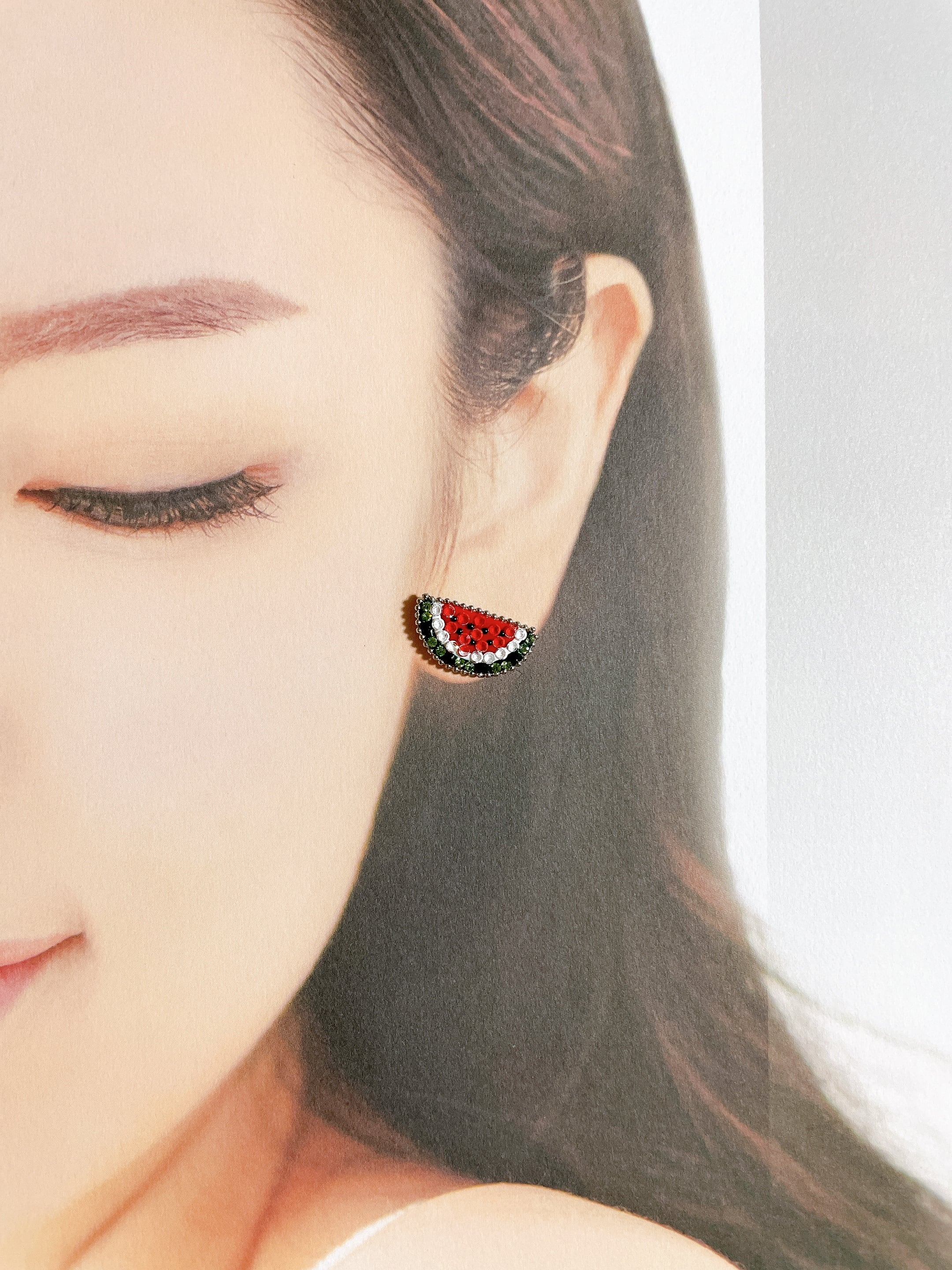 スイカの形から制作しクリスタルを一粒一粒のせて制作しました。