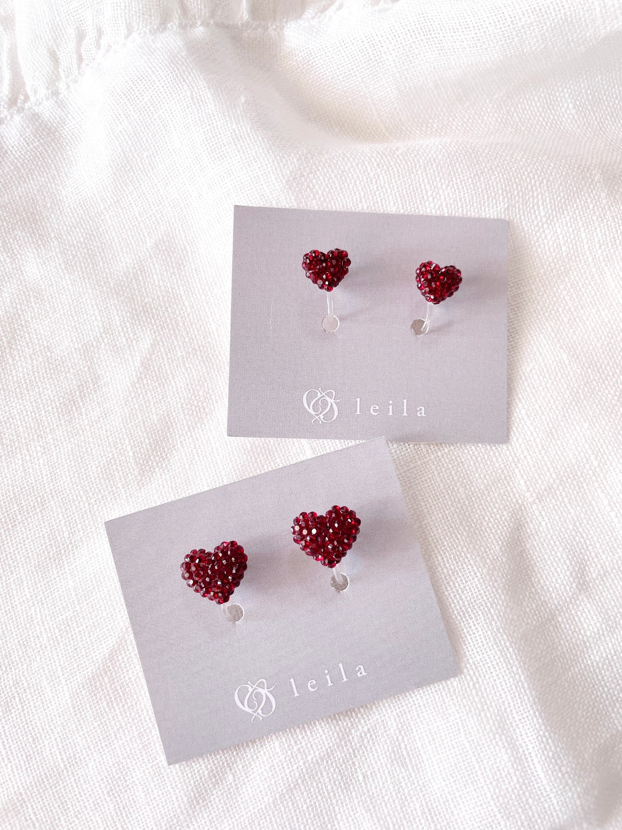 ぷっくりハートのイヤリング、ピアス | leilareiko